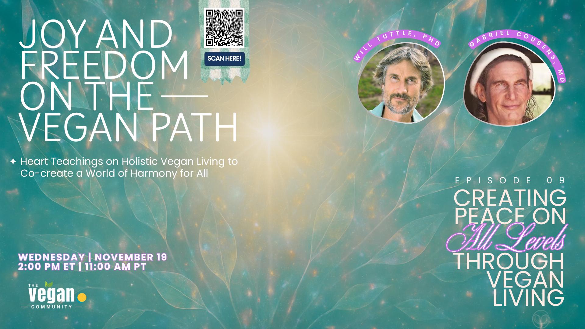 Please join us this coming Wednesday, November 19, at 2 pm EDT, 11 am PDT, for the ninth and wrap-up session of our online series, Joy and Freedom on the Vegan Path with our remarkable friend and colleague Dr. Gabriel Cousens, MD.