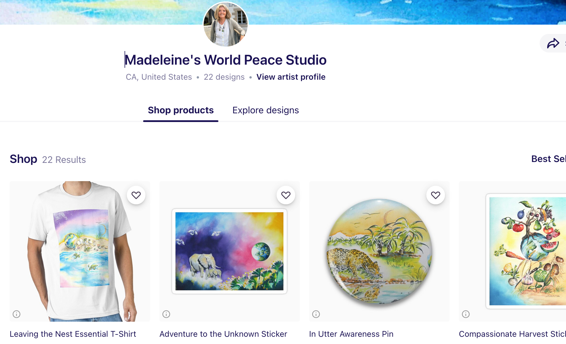 For you who appreciate Madeleine’s original art, we now have 20 of her pieces available in a broad array of items that also make pleasing gifts; you can see them all at Madeleine’s World Peace Studio.Thanks for your efforts on behalf of a more conscious world!